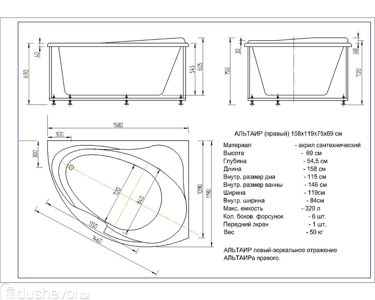 | Форма | Асимметричные ванны |