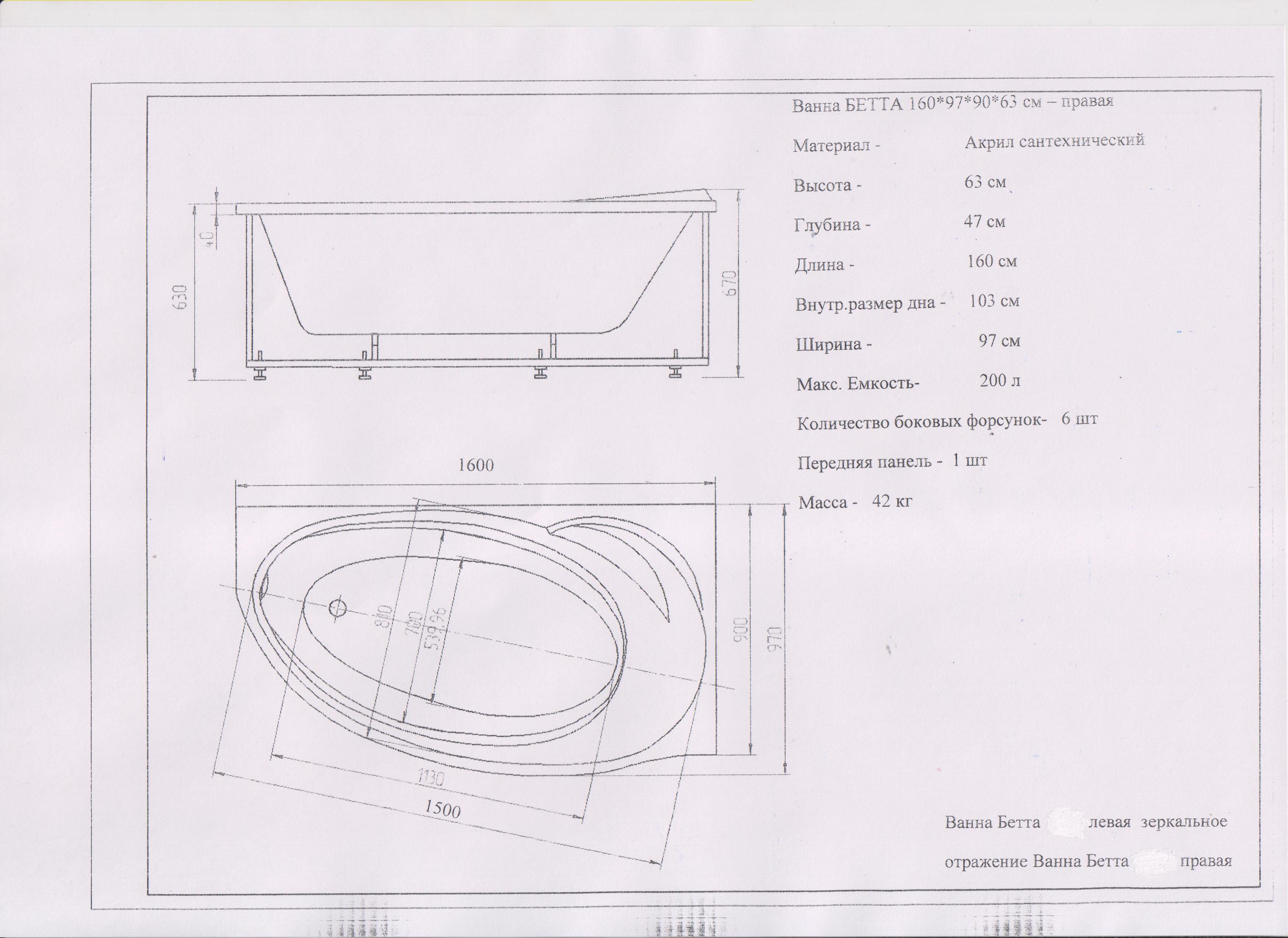 | Форма | Асимметричные ванны |